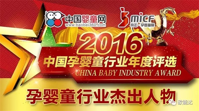 2017年3月24日,2016中國(guó)孕嬰童行業(yè)年度評(píng)選頒獎(jiǎng)晚會(huì)在北京中國(guó)大飯店隆重舉行,現(xiàn)場(chǎng)揭曉了中國(guó)孕嬰童行業(yè)杰出人物。行業(yè)杰出人物獎(jiǎng)共有31位人物參與角逐,并由950多萬(wàn)人次大眾投票和200位專家評(píng)審?fù)镀碑a(chǎn)生。