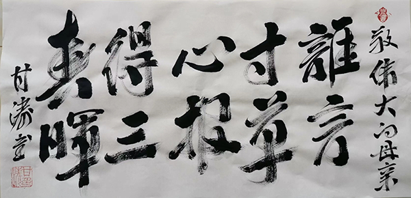 第四從書法藝術(shù)上,甘董事長(zhǎng)是博觀約取、厚積薄發(fā)的藝術(shù)家。甘濤董事長(zhǎng)非常熱愛書法,練習(xí)書法的時(shí)間長(zhǎng)達(dá)二十幾年,平時(shí)工作不管再忙,基本上每天都會(huì)抽時(shí)間進(jìn)行書法練習(xí),甘總書法功底扎實(shí),筆精墨妙;公司艾達(dá)產(chǎn)品名稱就是出自甘濤董事長(zhǎng)的手筆,同時(shí)在清華大學(xué)讀書期間多次發(fā)表書法作品。